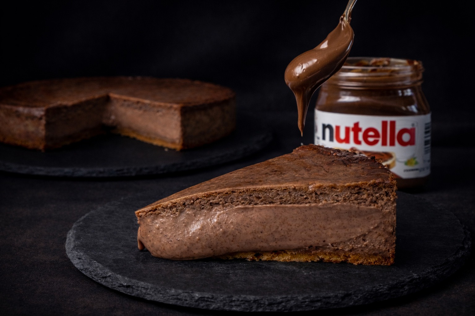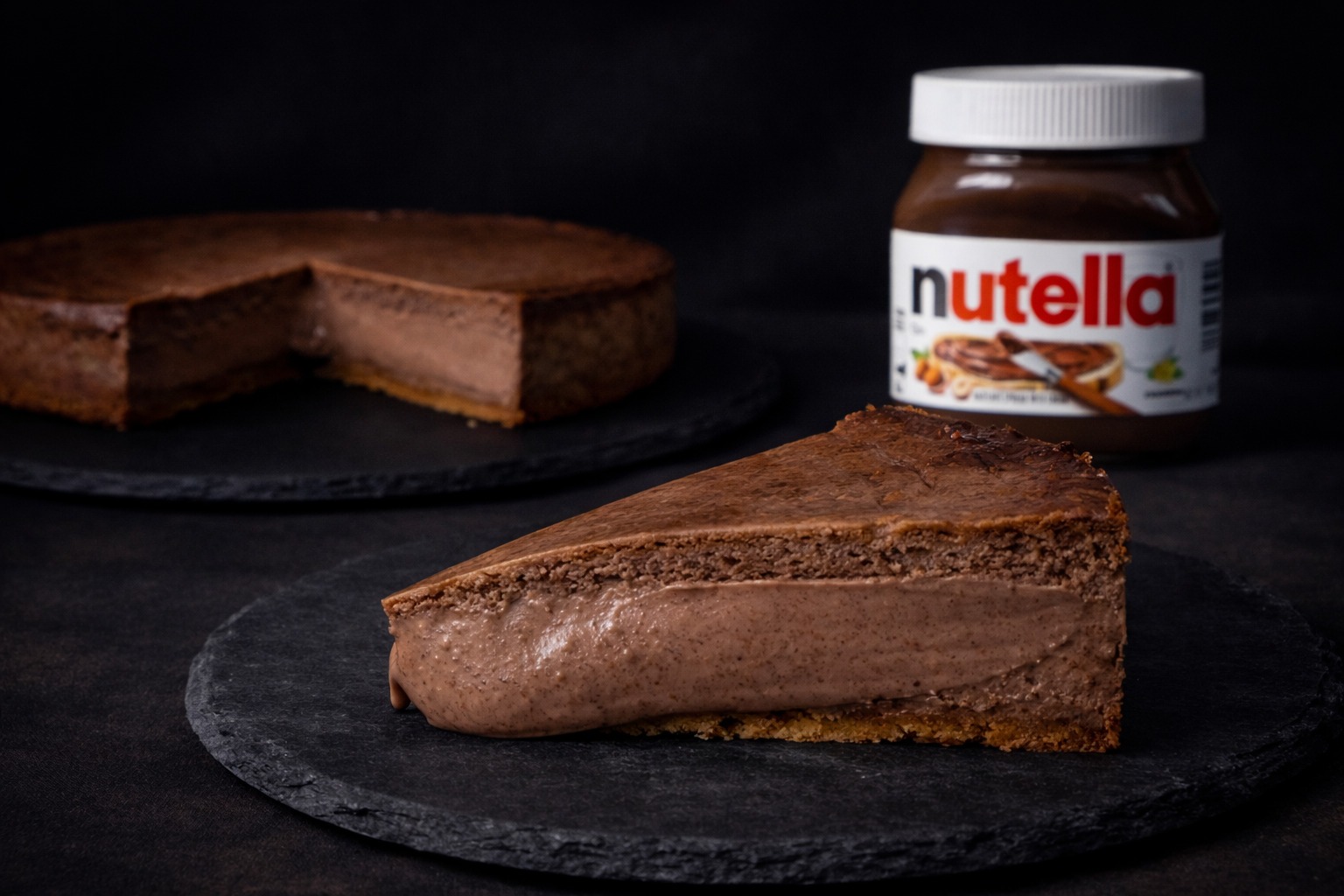 La Tarta de Queso de Nutella une lo mejor de dos mundos: la textura sedosa de nuestra tarta de queso y el sabor intenso de la crema de cacao y avellanas.